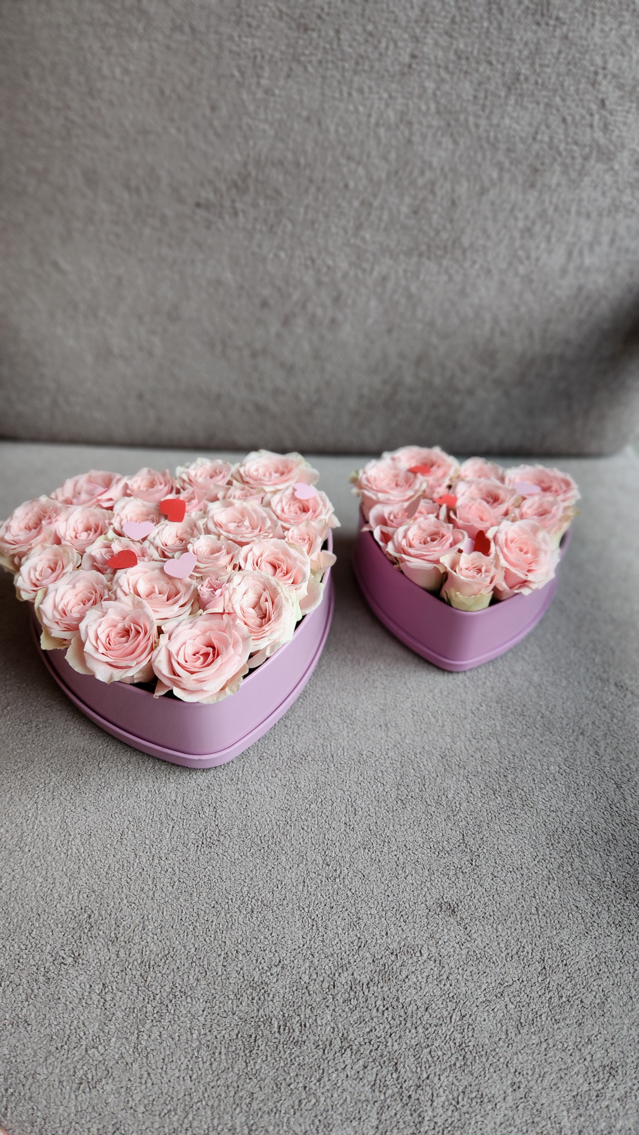* Arreglo de mini rosas (rosadas o rojas según disponibilidad) en base con forma de corazón de 12 x 12cm