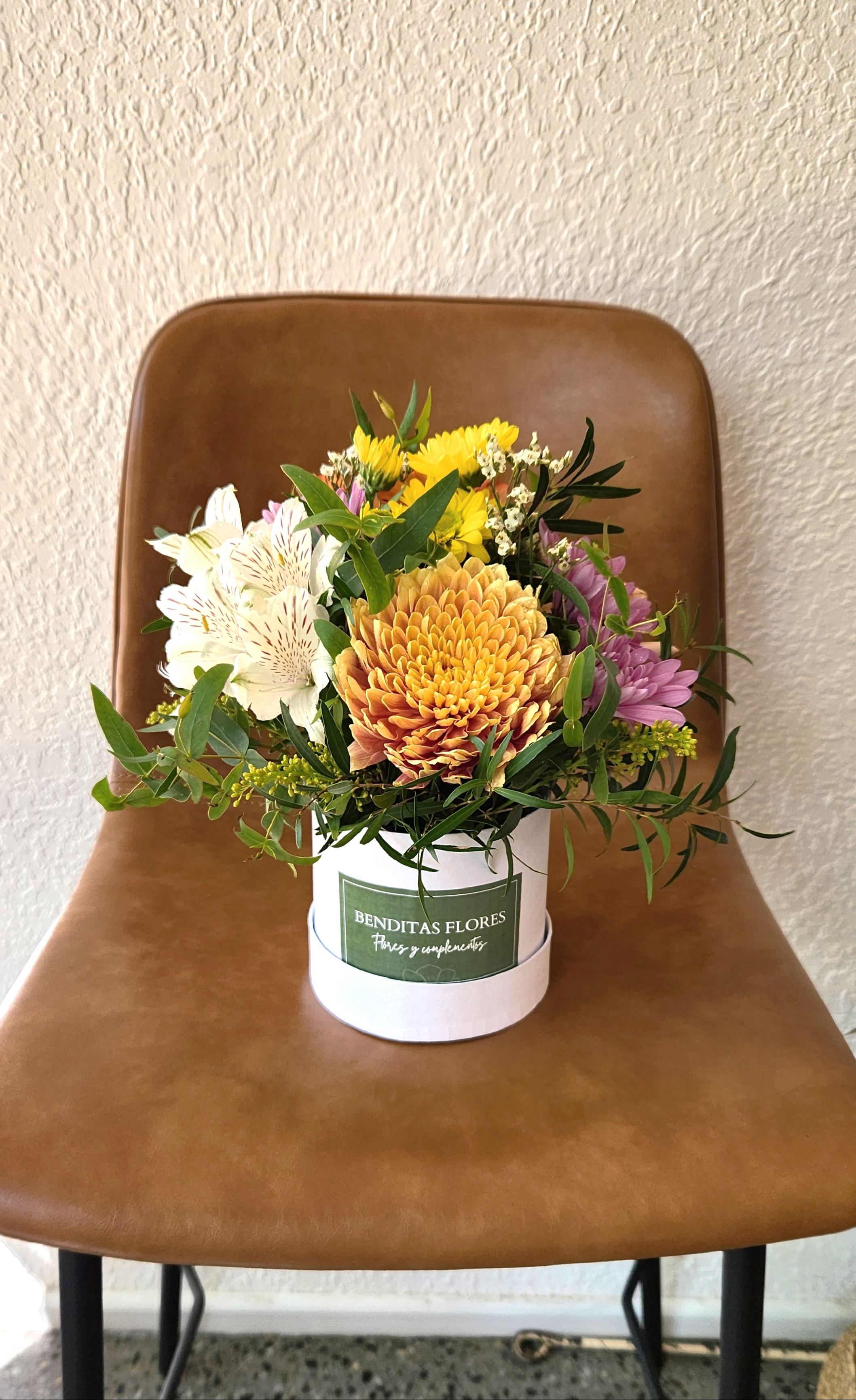 Si querés regalar algo diferente, la Mini Flower Box es lo ideal. Es un arreglo de flores variadas y follajes en base de cartón rígido de 11 x 11cm. Las flores a utilizar serán las sujetas a disponibilidad en el momento del armado y a criterio del diseñador.