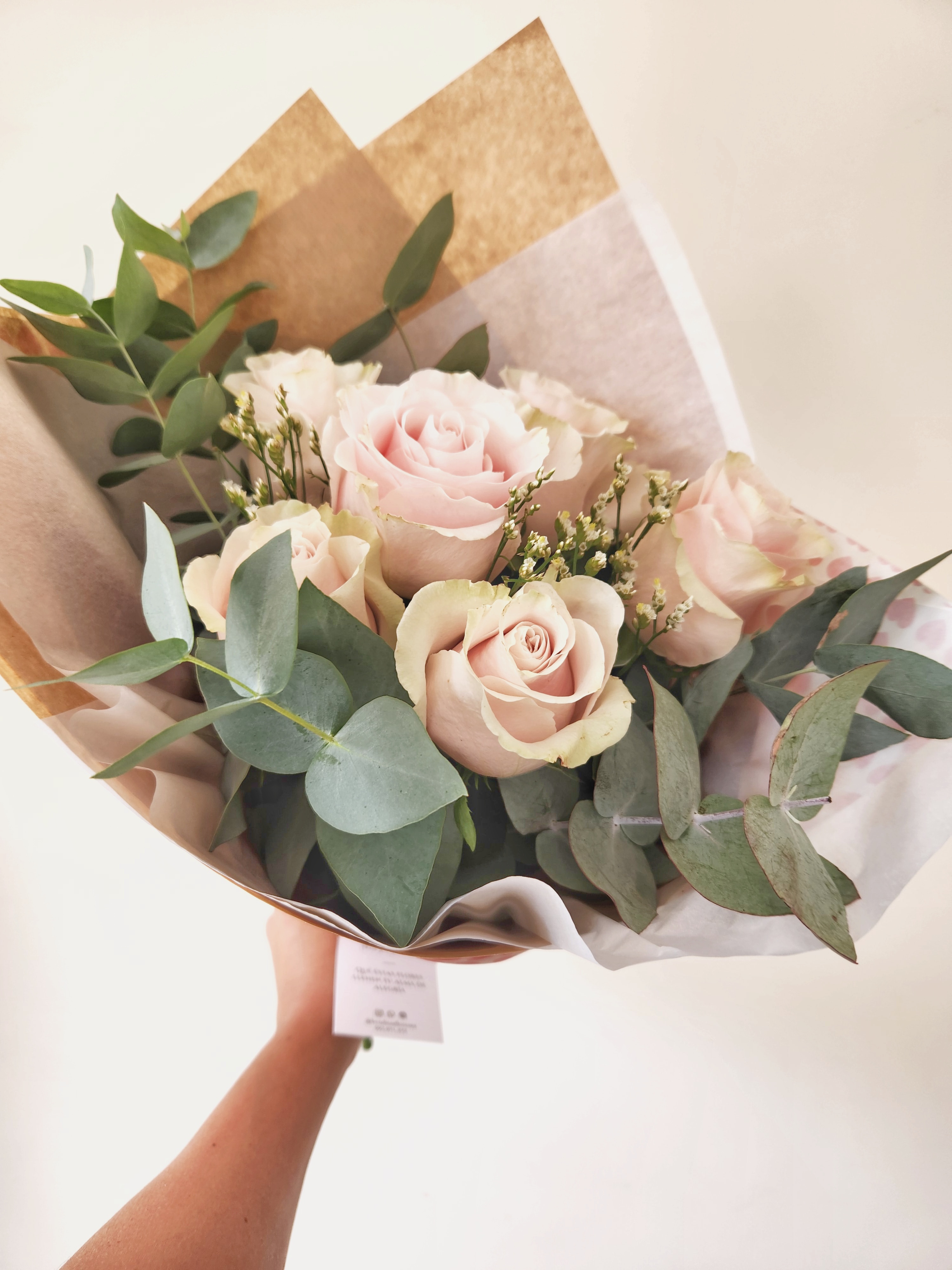 Consultar previamente el color disponible de rosas, el follaje a usar será el disponible en el momento del armado.