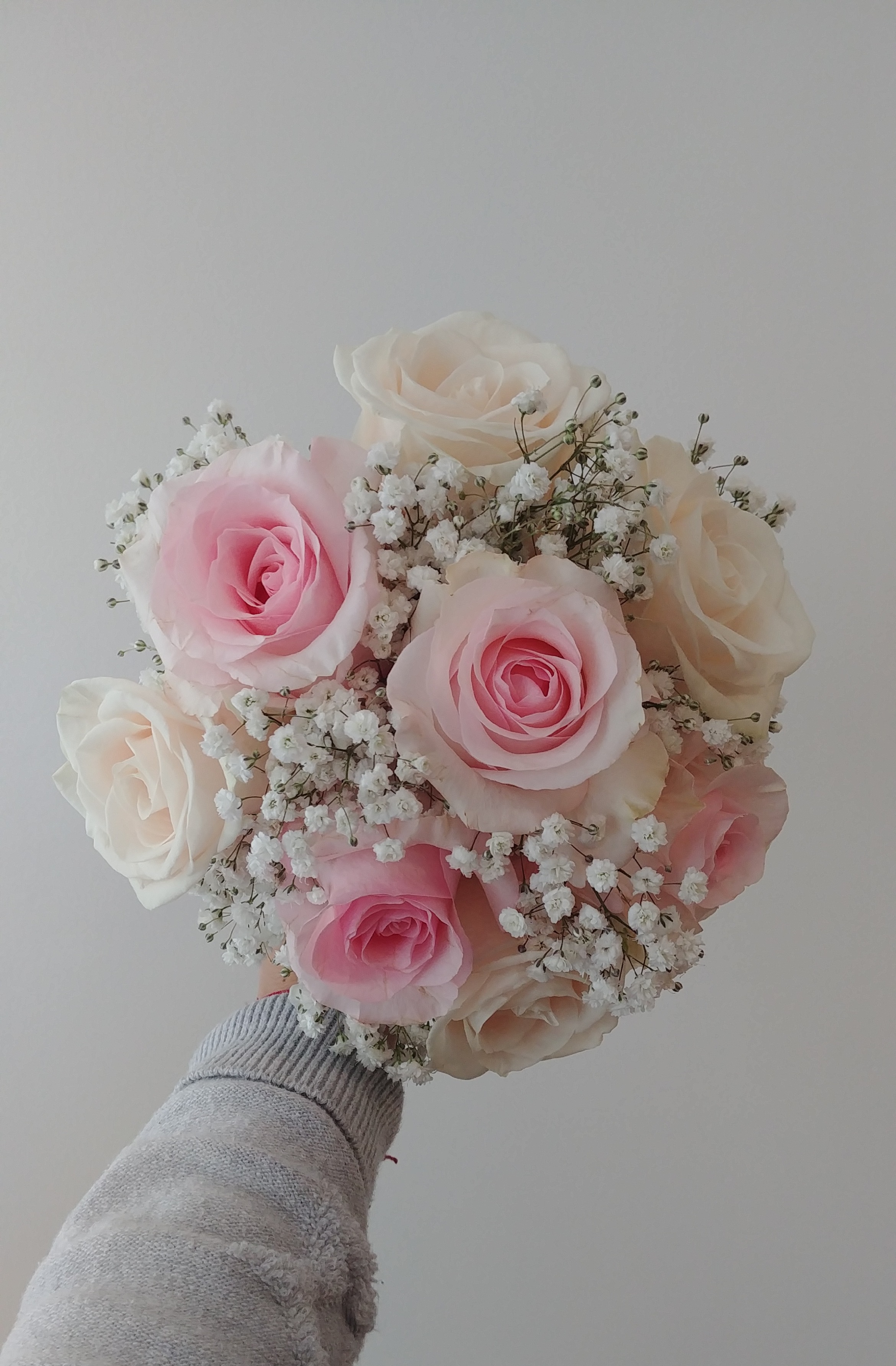 Ramo de novia en rosas de 2 tonos con ilusión.